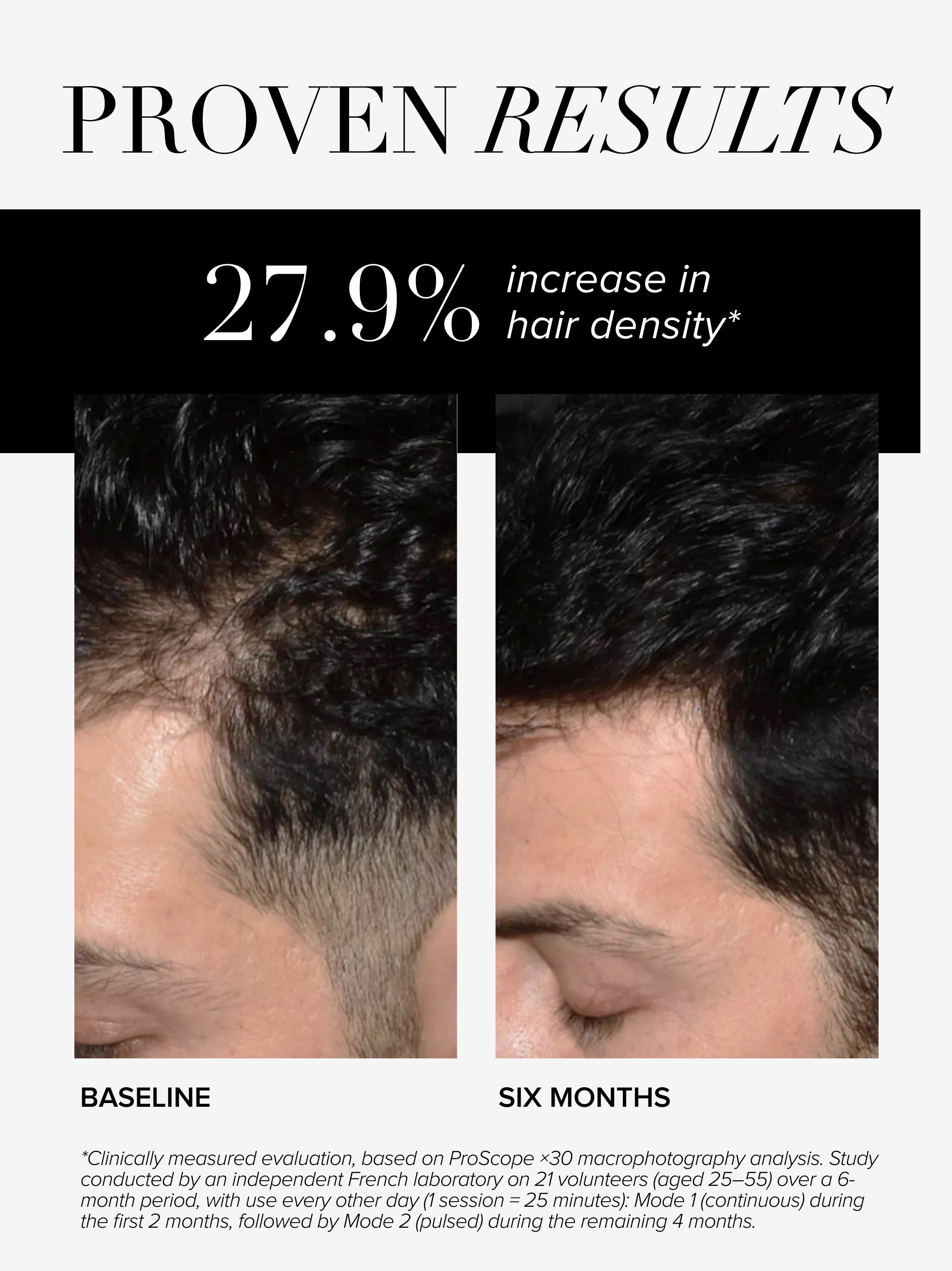 - 87.5% of respondents reported an improvement in hair density