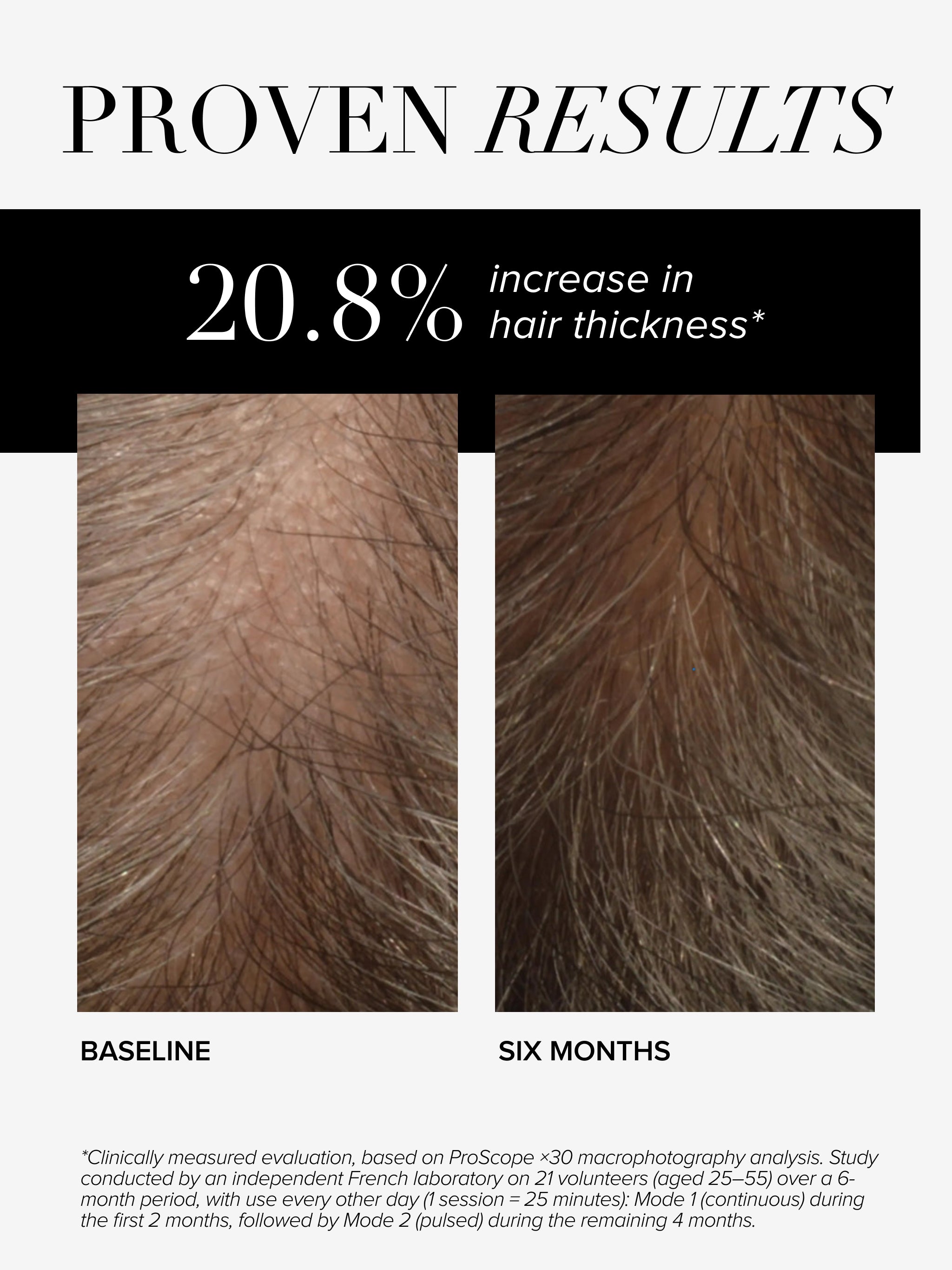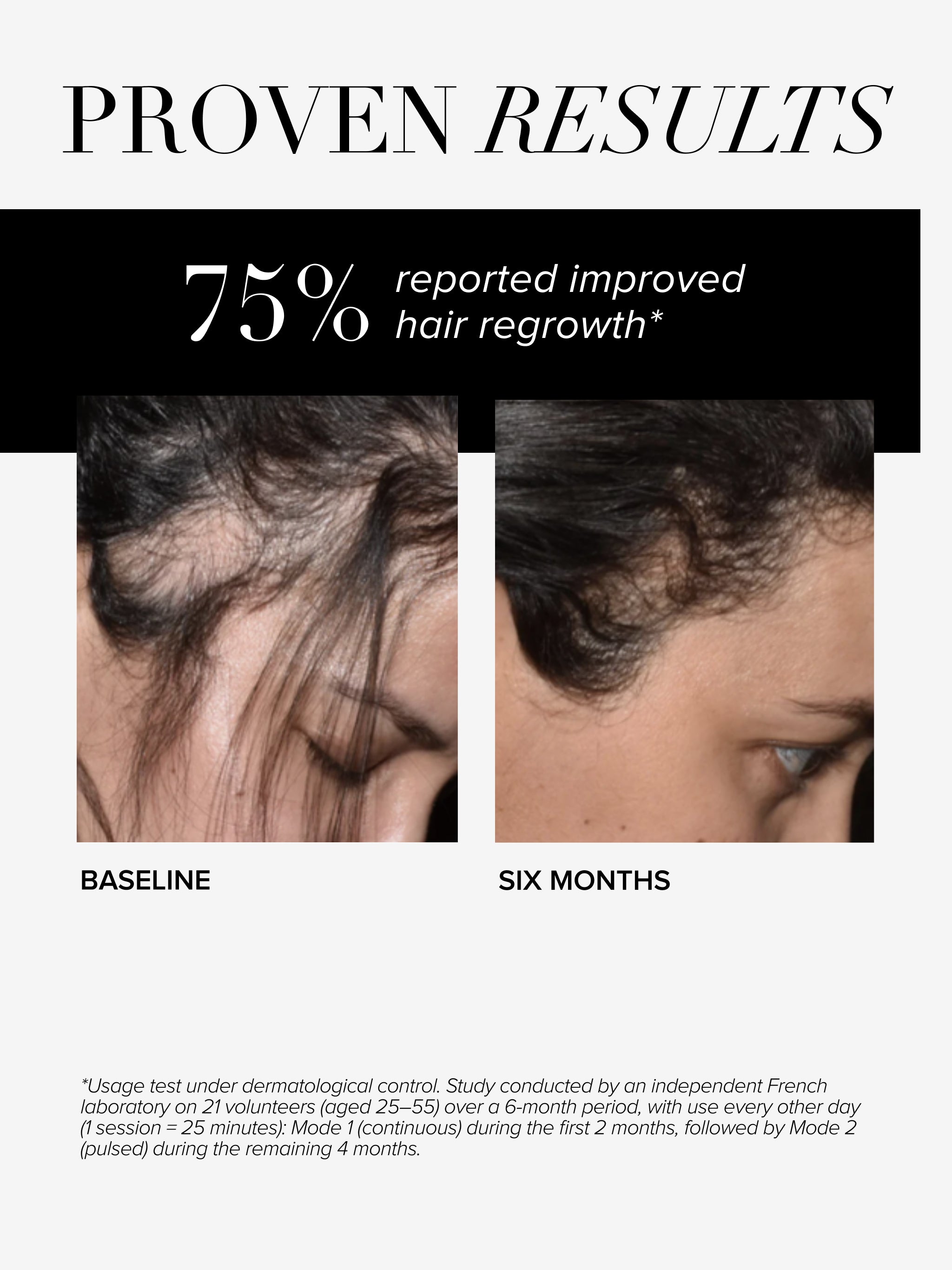 In an independent clinical study carried out on 21 people aged 25 to 55 for six months who used the helmet every other day: