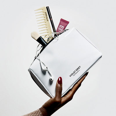 Saie’s compact travel case fits a multitude and makes for a chic gift—for yourself or others. Find it in eye-catching red only at VIOLET GREY.
