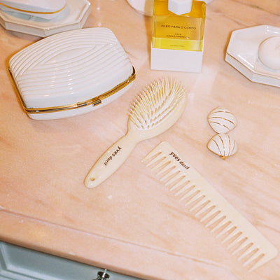 A travel essential for cosmetics, with a top-handle design inspired by vintage luggage.